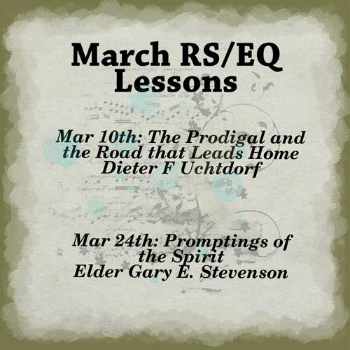 March2024 RS/EQ Lessons adminFebruary 17, 2024December 20, 2023Calendar, Relief Society Blast Post navigation PreviousNext Mar 10th: The Prodigal and the Road that Leads Home- Dieter F Uchtdorf Mar 24th: Promptings of the Spirit – Elder Gary E. Stevenson